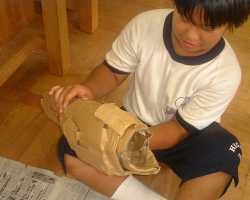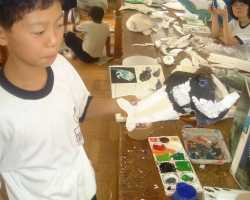 これも何のために「ここにおく」のかが分からず指示にしたがった結果です。「ていねいに並べていき、場所がなくなったらとなりのテーブルにも並べていってね。」と指示しなければならなかったのです。 |