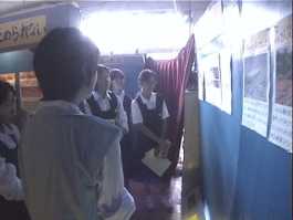 人類移民計画の歴史コーナーに案内して、タイトルを指さしながら、