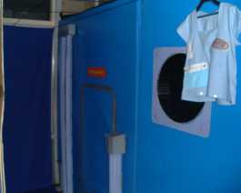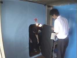 GOOD-BYE MY EARTH 〜地球は青かった〜 着陸カプセル(出口) DV(デジタルビデオ)による映像解説者用シナリオ 着陸カプセルの通路です。 手前の窓は偽物で、となりの扉は 関係者用の非常口です。 こちらが着陸カプセルの入り口。 中には25インチのテレビモニターが。 移民が失敗し、2000年の地球に タイムスリップしてしまいます。 搭乗員の後ろにあるのは… 青い地球が浮かんでいる宇宙空間。 当日はうまく撮影できなかったので 制作中の画像で。 お疲れさまでした。 感想をお書き下さい。 こちらの係は… 着陸カプセル搭乗員 すでに待たせてしまったら、 「大変お待たせしました。」 「それでは、中にお入りいただきます。お足元にお気をつけいただき、奥の 座席から順にお座り下さい。」 全員着席したら、ビデオの再生ボタンを押す。 ビデオの内容が「左手をご覧下さい」の場面になったら、照明のスイッチを 入れる。 ビデオが終了したら、 「モニターでごらんいただきましたように、西暦2000の地球へとタイム スリップしてしまいました。みなさんの努力次第で22世紀の地球の未来が 変わるかも知れません。人生前向きに努力すれば、何とかなるものです。本 日は宇宙船HA−L15号にご搭乗いただき、まことに有り難うございまし た。」 出口を開けて、 「どうぞお進み下さい。」 「こちらで乗船券にご感想をお書きいただき、ボックスの中に入れて下さい。 廊下にも机を用意して有りますので、ご利用下さい。ご協力有り難うござい ます。」 打ち上げカプセル内で上映されるビデオは、左画像のように、青い布を背景に撮影 したビデオ画像に、コンピュータグラフィックの画像を合成したもの(右画像)をメイン として、宇宙船が登場する映画のシーンを挿入したものです。 著作権法に触れるのでここでは紹介できませんが、 タイトルは「○○○13」と 「○○○トレック」です。 着陸カプセル内上映用VTR台本 chapter 1 機関士 「船長、惑星AIRから入電です。」 船長 「つないでくれ。」 管制塔 「こちらは惑星AIR宇宙ステーション管制塔です。長旅おつかれ さまでした。自動誘導装置を726にセットして、進入角8E1 4Cにアクセスして下さい。」 船長 「こちらはHA−L15、了解しました。」 chapter 2 通信士 「自動誘導装置726にセットしました…あれ?」 一同、通信士に目を移す。 副操縦士「どうした?」 通信士 「726にセットしたはずなのに、何も応答しません。」 船長 「もう一度やり直して見ろ。」 chapter 3 機関士 「船長、惑星AIRの手前側に次元の乱れが発生しています…、これ は他の宇宙船がワープした干渉波です。」 船長 「なに、ニアミスか!?」 副操縦士「このままでは次元の乱れに吸い込まれていきます。」 船長 「ブラックホール現象か…、緊急ワープするぞ!」 機関士 「惑星AIRを突っ切って向こう側に出ます!」 chapter4 副操縦士「だ、だめだ間に合わない!」 通信士 「時間が逆行していきます…、2190年…、まだ止まりません。」 船長 「馬鹿な…、その時代は惑星AIRにあるのは水素ガスと水だけだ ぞ!」 通信士 「2140年、まだ止まりません。最終到着時間は2000年 9月16日。」 船長 「だめだ、ブラックホールの中心を突っ切って空間移動するしかな い!今なら地球へ戻れるかも知れない!」 副操縦士「や、やってみます!」 chapter 5 船長 「(マイクをとって)乗客の皆さま、本宇宙船は惑星AIRへの移 民が失敗して地球へ戻ってまいりました。しかも遙か100年前 に時代を遡ってしまいました。しかし、皆さんの左手の窓をご覧 下さい。地球はまだ青い、豊かさが残っている水の惑星です。み なさんはこれから21世紀の人類の一人として、豊かな地球を守 っていって下さい。地球環境を守ることができるのは、22世紀 からやってきたみなさんだけなのですから。 展示場見取り図 こちらのボタンを押して、お入りください。 順番通りに入ることをおすすめします。 モノレール乗車場(入り口) 打ち上げカプセルゾーン 資料室Aゾーン 資料室Bゾーン 着陸カプセルゾーン