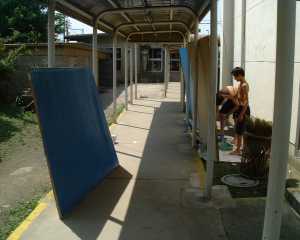 「今日もペンキ塗りしてくれる?」と頼んだら快く引きうけてくれました。昨日と同じように、上半身はだかで頑張っていました。