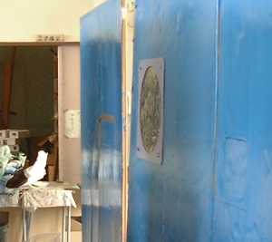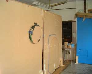 上の写真は、非常用ドアとのぞき窓を作っているところ。