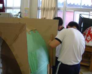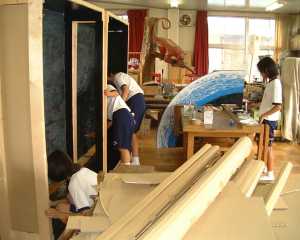 午前は「アーチストチーム(4名)」と「船内造作チーム(2名だけど)」と「ファッションデザイナーチーム(元から2人)」の活動。
