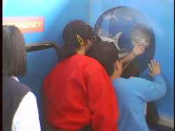 「こちらでは、いま皆様が進んでいます海底ステーションまでのエレベータがどうして必要なのかを説明しています。」
