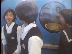 「まもなくエレベータは海底ステーションに到着いたします。窓の外をご覧下さい。見えるサカナの種類もだいぶ変わってきました。」