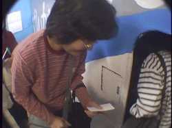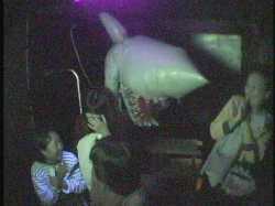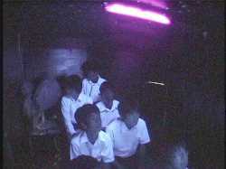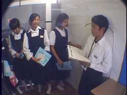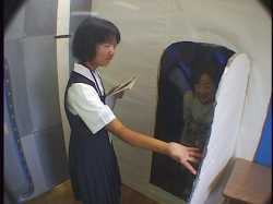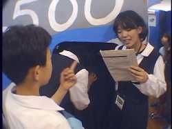 げんかい6500の中の様子を耳を澄まして聞き、乗務員の「しばらくお待ち下さい。」の 言葉と同時に非常ハッチを開けて、上半身を乗り出してゲストの無事を確認してから、 「お待たせしました。どうぞこちらへお進み下さい。」 全員出たら、 「このたびは不測の事態により海底都市を見学していただくことはで きませんでしたが、海底に住むことの素晴らしさは充分にご理解いた だけたと思います。今月は全てのお部屋に照明器具をお付けする キャンペーン期間中ですのでどうぞ早めにご検討下さい。残念ながら お気に召さないという方は、環境悪化のいちじるしい地上生活をお続 けになることになりますが、(うそ泣きをしながら)お気の毒です。」 感想用紙入れを指さしながら、 「感想をご記入の上、旅行券をこちらの箱の中にお入れ下さい。本日は 1年3組提供、海底住宅見学ツアーにご参加いただき、ありがとうござい ました。」 一礼 |