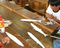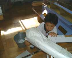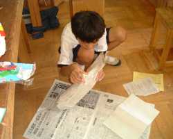 木工用接着剤をつかって紙を何重にも貼り付けていきます。