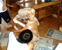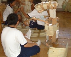 残りの3体分の土台づくりはこれを見本として各チームが材料取りから始めています。