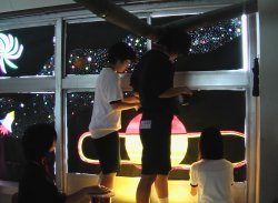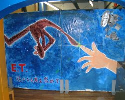 当日はボイジャーの模型の背景となります。図柄がちょっと幼稚な感じかなと心配もしましたが、こうしてみるとなかなかたいしたものです。 |