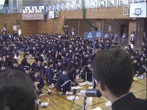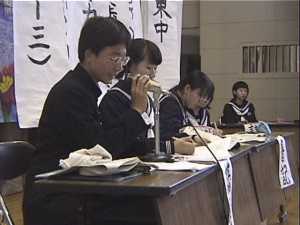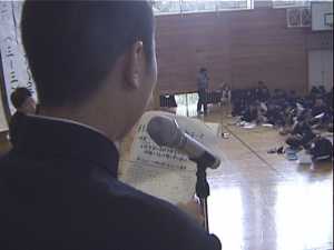 例年、午後の5、6時間目を利用して、2時間連続して実施しています。 この日までに各クラスの発表者は、議長に指名されることを信じて練習を重ねてきました。発言 のあるクラスは、集会委員がプラカードを上げてアピールし、議長は時間内に終わるように考え て、指名していきます。 採決は賛成のクラスがプラカードを上げて、行います。 予想される質問についての回答は用意しておきますが、予想外のつっこんだ質問についてはそ の場で考えるので、緊迫した空気が流れます。質問に上手く答えられない場合は、議長の判断 で打ち切り、先に進みます。 ![]() ![]()
