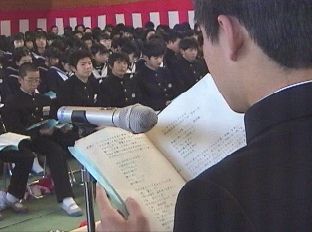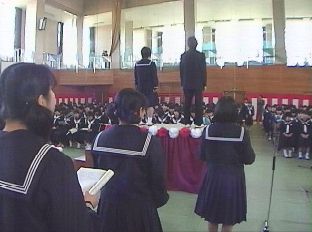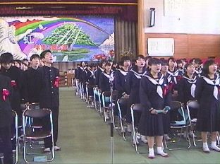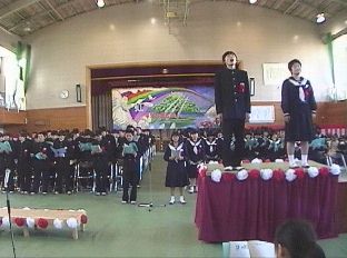 ![]() 3年間を振り返る〜3年間のあゆみ〜 私立学校に進学が決まるなど、早く進路が確定した3年生が中心 となってスライド委員会が結成され、スライドの上映が行われる。 その後、3年間の活動をアピールするような、よびかけが行われる。 ![]() このスライドのスクリーンは、模造紙を25枚張り合わせたものです。 ![]() ![]() ![]() ![]() BACK |